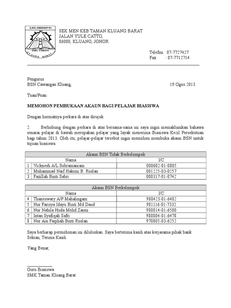 Surat permohonan bantuan adalah jenis surat memohon bantuan samada kewanganpendidikandana perniagaanrumah dan biasiswa dari sesebuah organisasiagensi dan individu. Maklumat Lanjut Dan Pertanyaan Tentang BKP 2021. Tempoh yang diberikan untuk melapor diri adalah 30 hari selepas tamat pengajian tarikh peperiksaan.