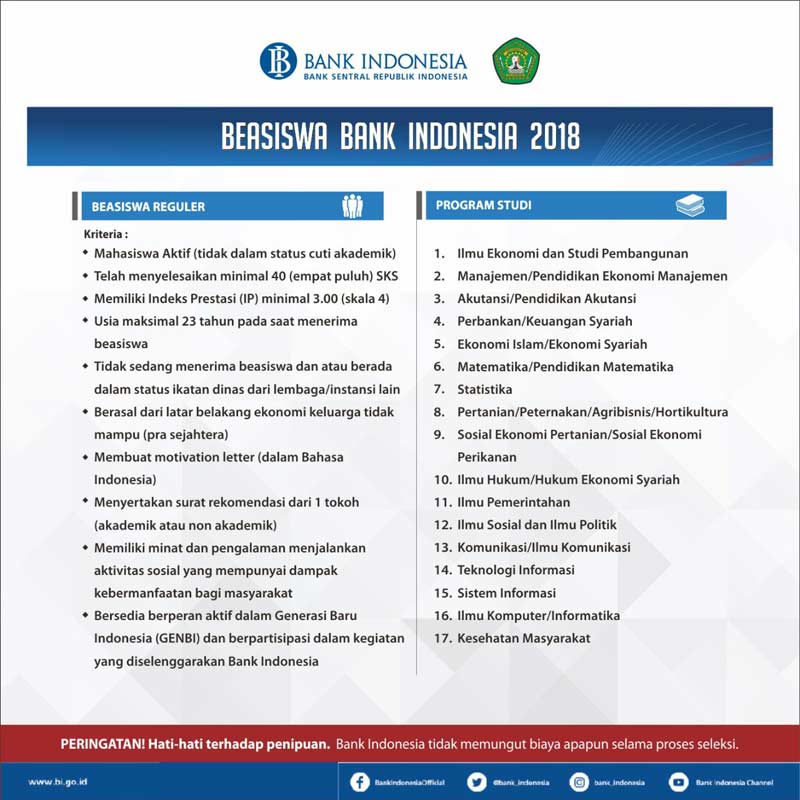 Penerima biasiswa dikehendaki untuk memenuhi syarat-syarat yang ditetapkan dalam perjanjian biasiswa termasuk tetapi tidak terhad kepada mengekalkan Purata Nilai Gred Kumulatif PNGK sekurang-kurangnya 300 atau sekurang-kurangnya Kelas Kedua Atas dalam peperiksaan akhir. 1 Bank Umum Syariah dan Unit Usaha Syariah.