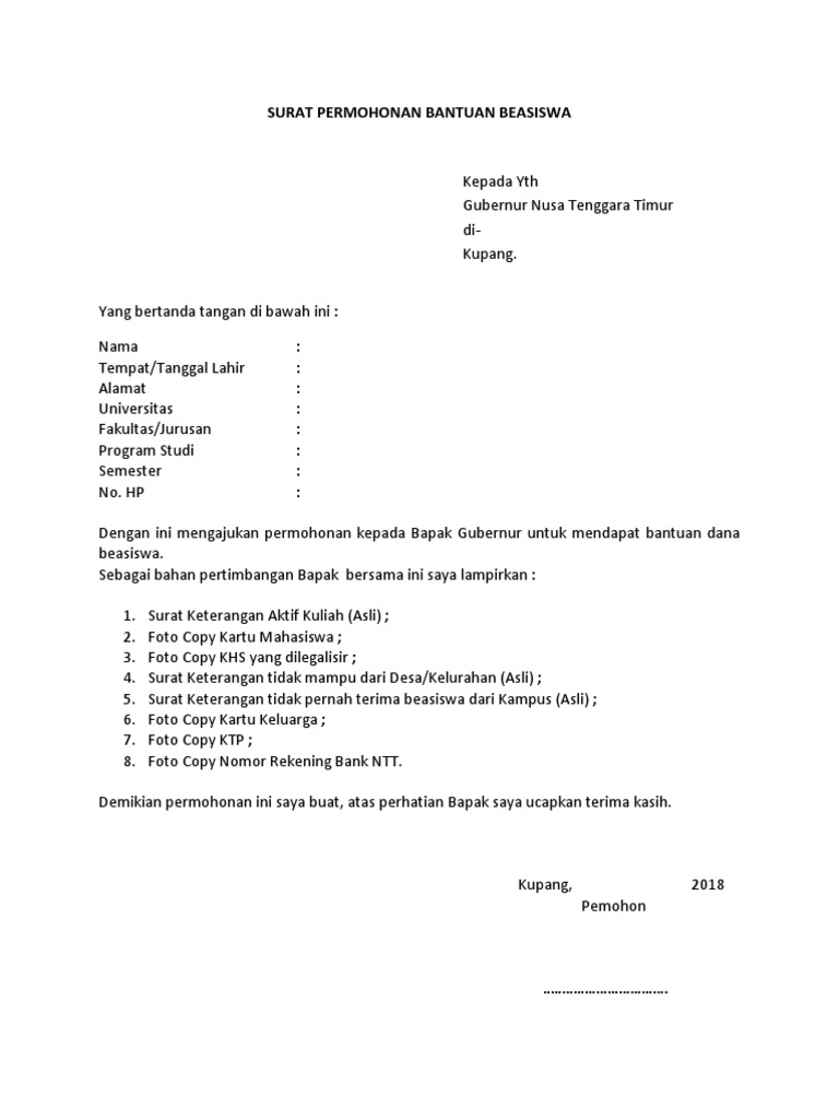 Surat Permohonan Bantuan Beasiswa 1 Pdf