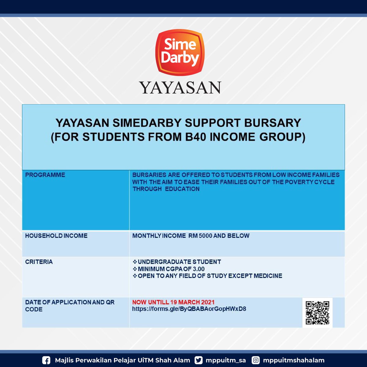 Mpp Uitm Shah Alam On Twitter Merujuk Perkara Di Atas Yayasan Simedarby Membuka Tawaran Biasiswa Yayasan Simedarby Support Bursary For Students From B40 Income Group Untuk Pelajar Pelajar Diploma Dan Ijazah Sarjana Muda